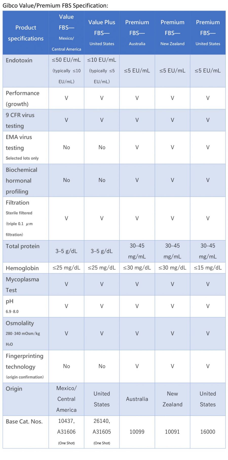 以上資訊:http://assets.thermofisher.com/TFS-Assets/BID/brochures/gibco-sera-brochure.pdf