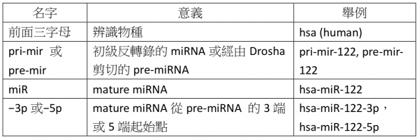 命名miRNA簡要規則: