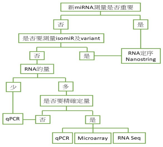 主要方法有三種: qPCR、microarray及NGS,經由上述實驗獲得數據,再經由數據的判讀及標準化後便可計算miRNA表現量的差異。