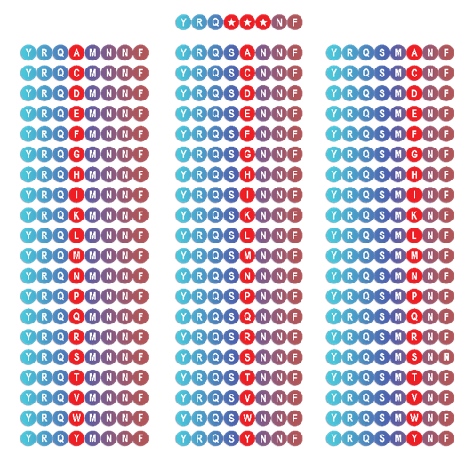 6. Scrambled library:已知的有效序列,做胺基酸位置的排列組合,序列變化性是最高的,通常是用來當作negative control證明原始排列組合的序列具有功能及活性
